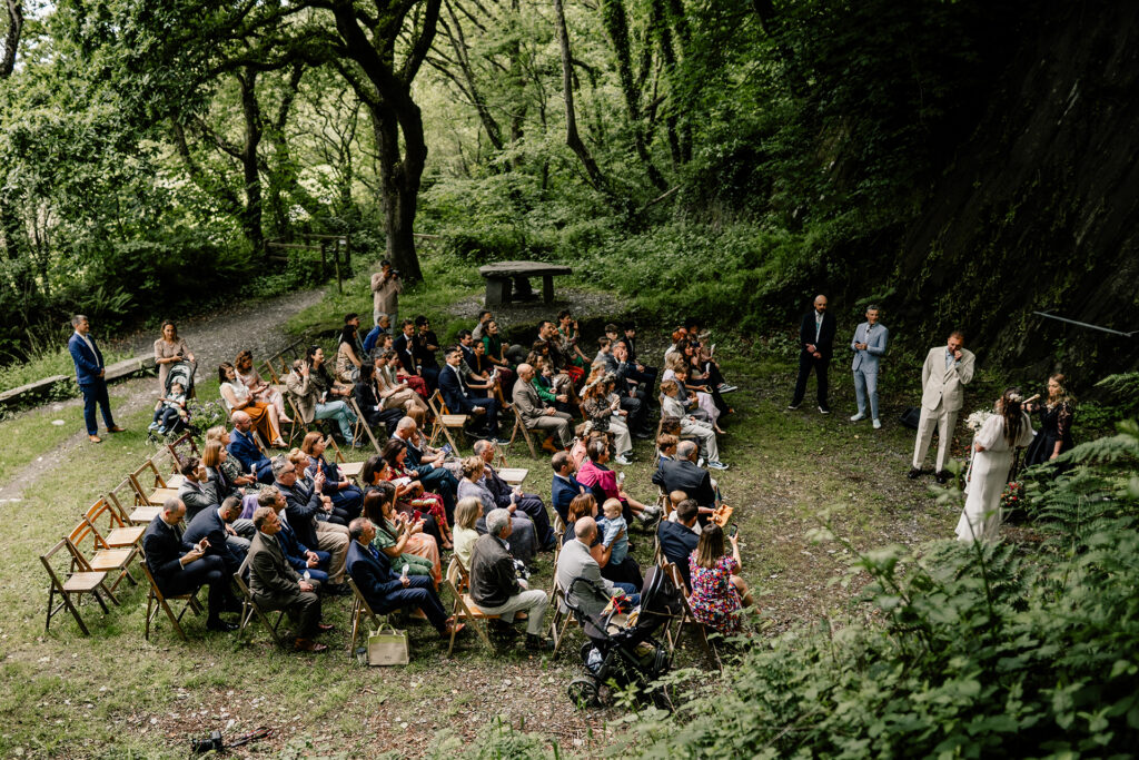This is the one. A natural slate quarry ringed by ancient oak trees and the light that comes through those canopies is a bloody delight. Dappled, golden, constantly shifting. As a photographer, I could work here all day. As a couple, it’s one of the most dramatic outdoor ceremony spots in Wales.