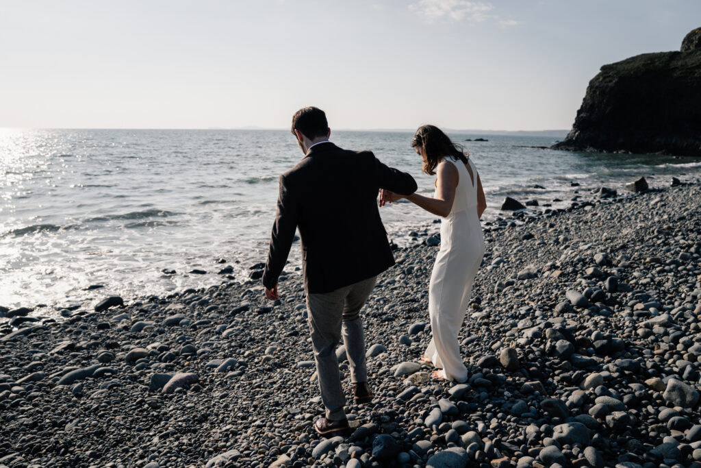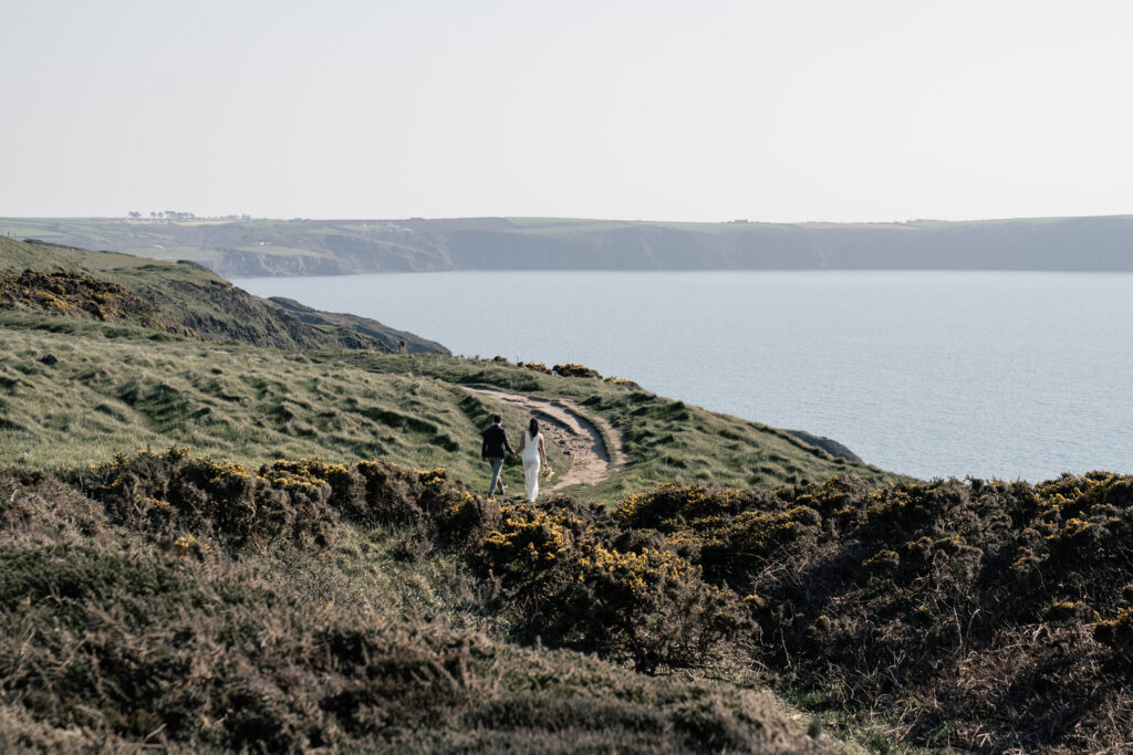 For elopement photography in Pembrokeshire, it doesn’t get much better. The best time for photos here is morning or evening when the light is soft, the shadows are gentle, and the landscape glows with that perfect golden-hour magic. The scenery does the hard work I just capture it.